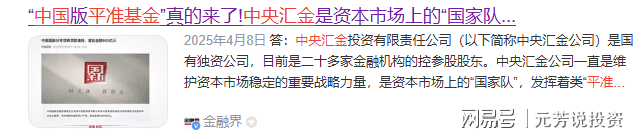 在4月7日A股暴跌后,8日中央汇金就果断出手护盘,并表示中央汇金公司一直是维护资本市场稳定的重要战略力量,是资本市场上的“国家队”,发挥着类“平准基金”作用。自2008年以来,中央汇金公司多次参与维护资本市场稳定工作,积极提升资本市场的内在稳定性。